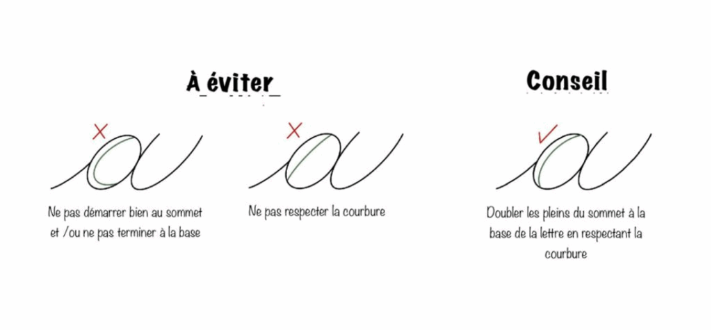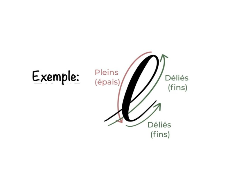 - les pleins: ce sont les traits descendants (qui descendent)qui vont être épais.