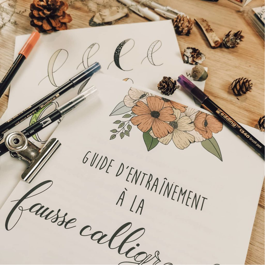 Voilà, vous savez maintenant tout sur la fausse calligraphie! Vous pouvez vous entraîner en téléchargeant gratuitement le guide d’entraînement en cliquant ci-dessous.